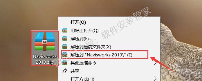 1.点击【Navisworks2013】压缩包,鼠标右击选择【解压到Navisworks2013】。