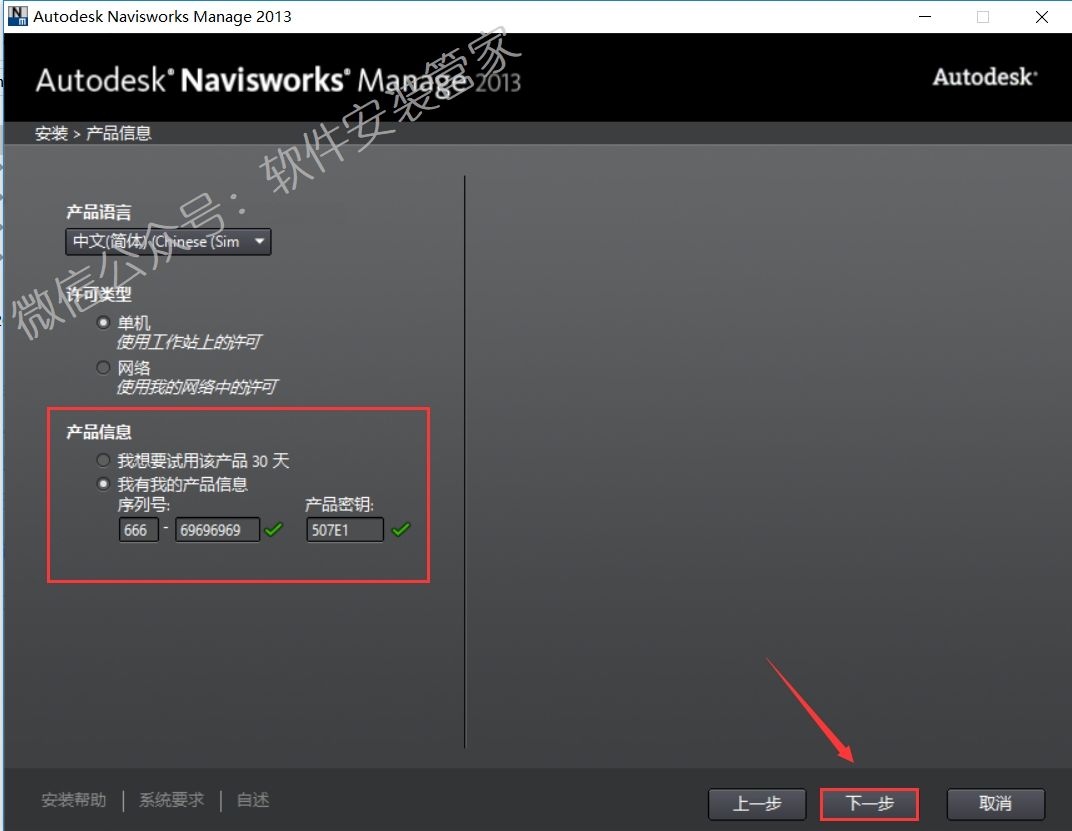 9.输入序列号:666-69696969,产品密钥:507E1,点击【下一步】。
