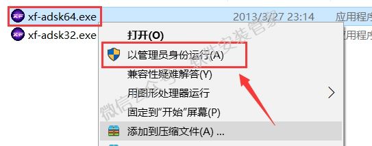 21.在电脑桌面上找到【计算机】或【此电脑】鼠标右击选择属性查看自己的电脑位数,64位系统选中【xf-adsk64】,32位系统选中【xf-adsk32】,然后鼠标右击选择【以管理员身份运行】。
