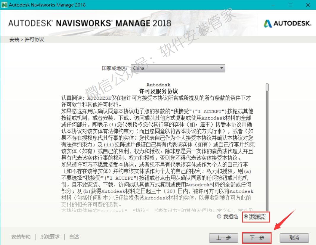 9.点击【浏览】更改软件的安装目录,建议安装在除C盘之外的磁盘,可以在F盘或其它盘里面新建一个【Navisworks2018】的文件夹,然后点击【安装】。