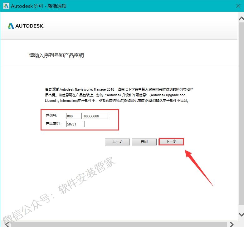 17.输入序列号:066-66666666,产品密钥:507J1,点击【下一步】。