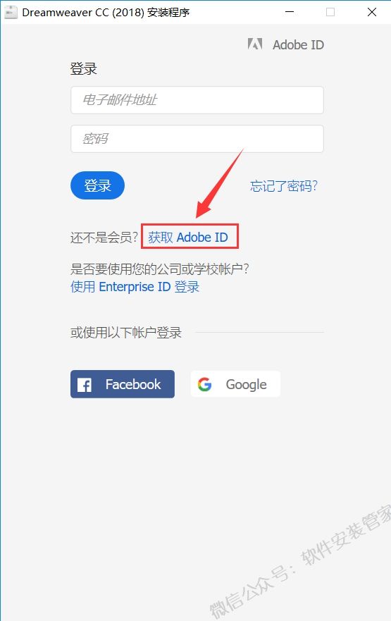 4.有Adobe账号的用户可以直接登录,没有账户的用户点击【获取 Adobe ID】。