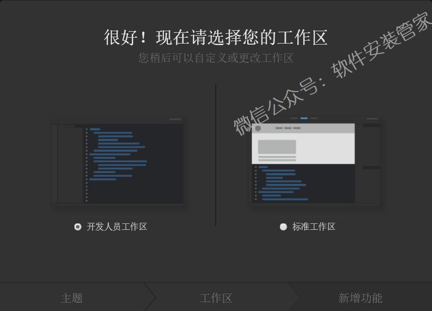 22.点击【开发人员工作区】。温馨提示:工作区在软件里面还可以设置。