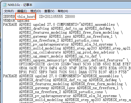 3.打开破解文件\UGSLicensing下的nx8.lic文件,右键以记事本方式打开
