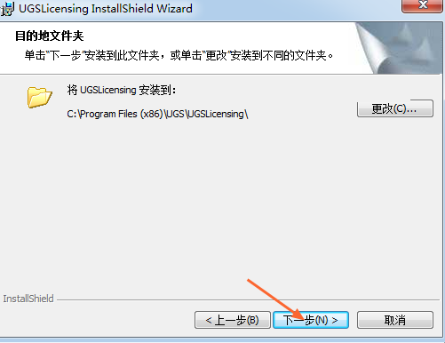 9.选择安装目录,默认安装目录在C:\Program Files (x86)\UGS\UGSLicensing\(建议安装在除C盘以外的磁盘上,可在D盘新建文件夹D:\Program Files (x86)\UGS\UGSLicensing\),点击下一步