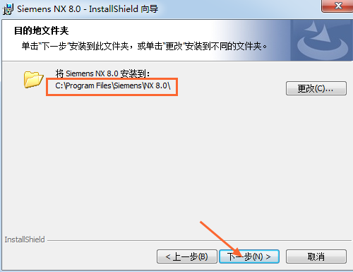 17.选择安装目录,默认安装在C:\Program Files \Siemens\NX 8.0\(建议安装在除C盘以外的磁盘上,可在D盘新建一个文件夹D:\Program Files \Siemens\NX 8.0\),点击下一步