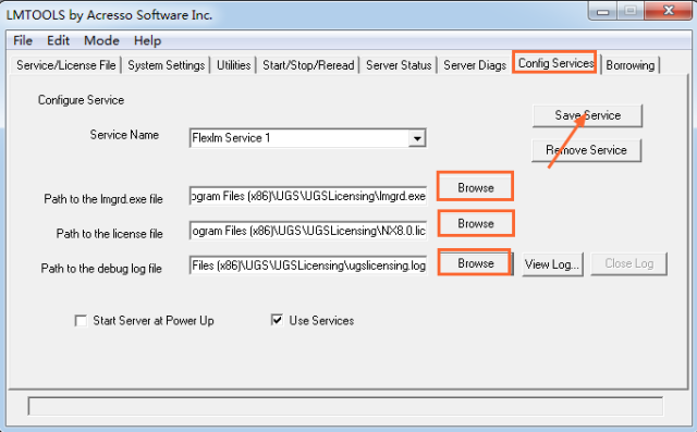 27. .在Config Services中点击Browse,选择如图所示的文件,点击Save Services