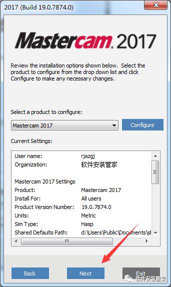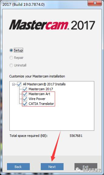 6.选择安装插件,第一个是必须安装的mastercam2017程序,其他3个是自己勾选的,勾选过后点击next,进下一步。