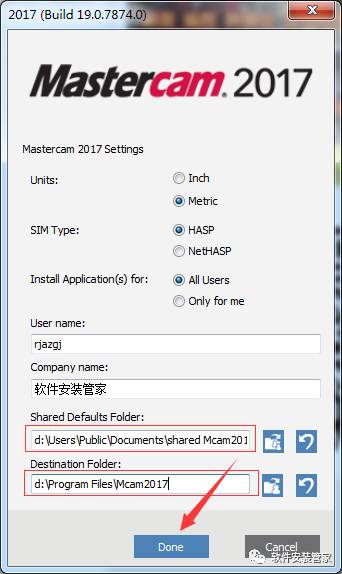 8.建议安装到除C盘以外的盘符,这里我直接将c改为d即可,然后点击Done保存设置。