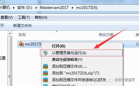 2.右击软件压缩包,选择解压到“Mastercam2017”。