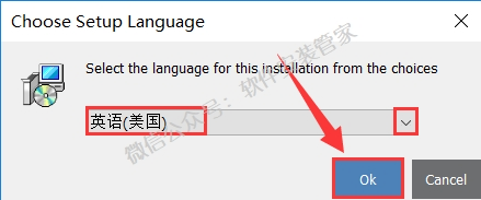 5.点击下拉按钮选择【英文】,点击【OK】。