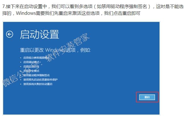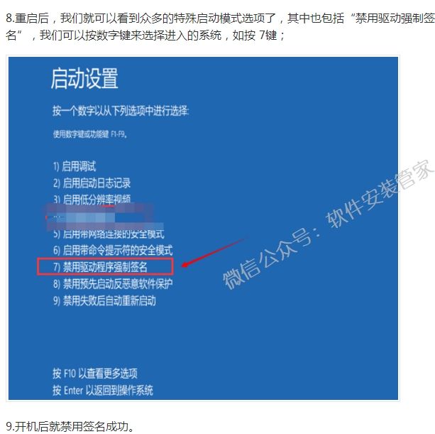 windows10系统需要先设置禁用驱动程序强制签名(win7系统不用设置直接看18步)。设置完成后即可继续安装。
