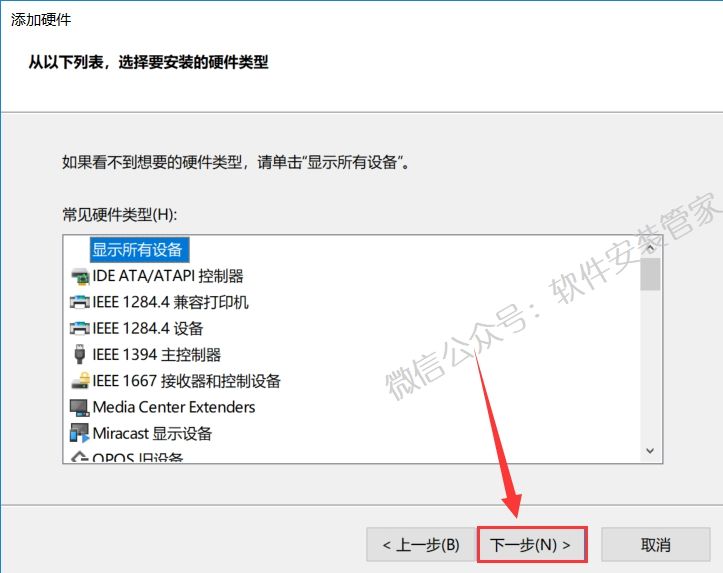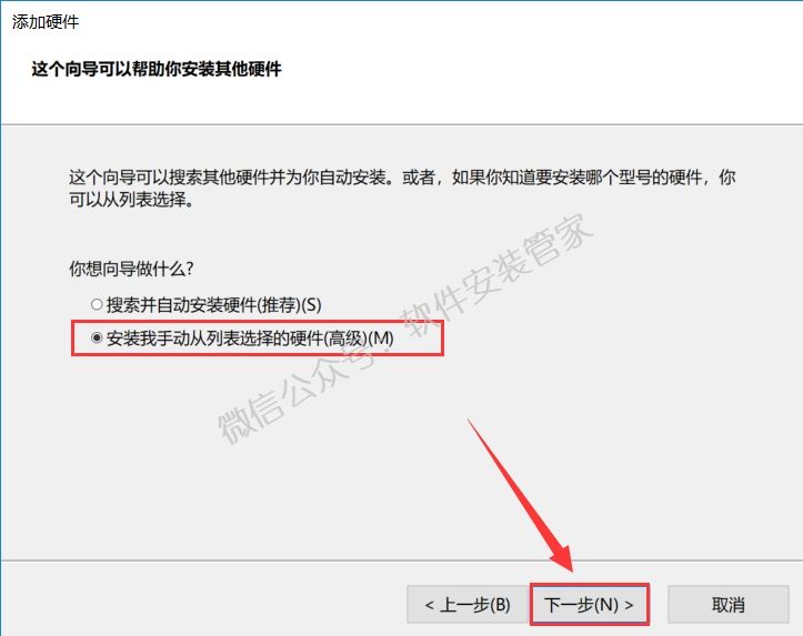 22.选择【安装我手动从列表选择的硬件】,然后点击【下一步】。