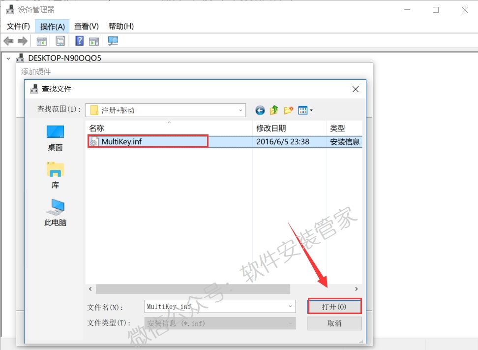 26.找到解压好的【Mastercam2018】文件夹,打开【注册+驱动】文件夹,选择【MultiKey】文件,点击【打开】。