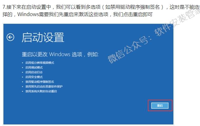 windows10系统需要先设置禁用驱动程序强制签名(win7系统不用设置直接看18步)。设置完成后即可继续安装。