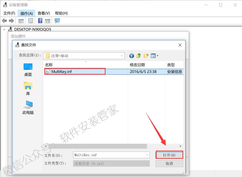 26.找到解压好的【Mastercam2019】文件夹,打开【注册+驱动】文件夹,选择【MultiKey】文件,点击【打开】。