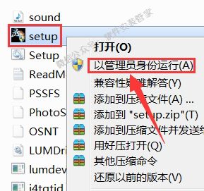 4.在文件夹中找到“setup”选中后,鼠标右击选择“以管理员身份运行”。