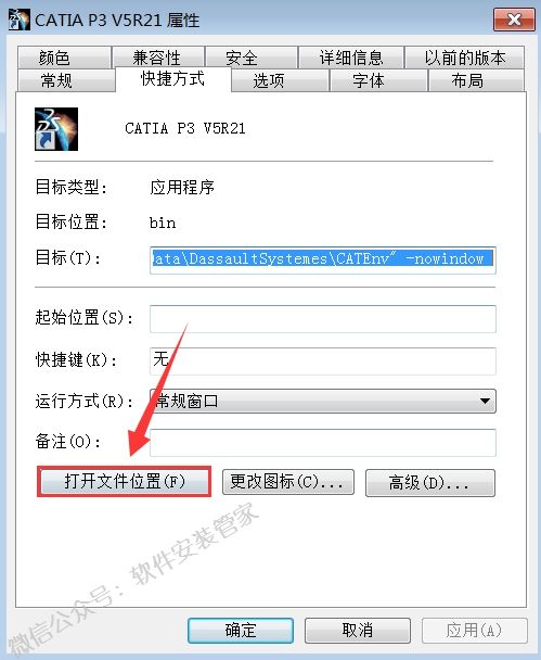 21.找到桌面上的“CATIA P3 V5R21”图标,选中后鼠标右击选择“属性”。
