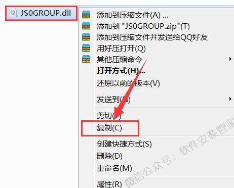 24.选中“JS0GROUP.dll”然后鼠标右击选择“复制”。