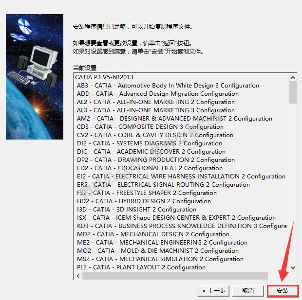 6.点击“浏览”更改软件安装位置,建议安装到除C盘以外的磁盘,可在D盘或其它盘新建一个CATIA2013文件夹。