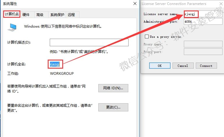 30.在“计算机名”栏中找到“计算机全名”,将计算机名称全选后“Ctrl+C复制”接着“Ctrl+V粘贴”至第27步中弹出的窗口处。