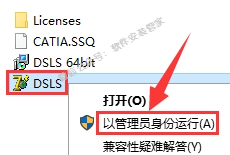 34.在解压出的文件夹中找到“DSLS”选中后鼠标右击选择“以管理员身份运行”。