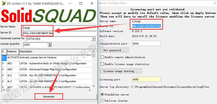 35.将右图中的两个信息分别填入左图中,其中“Server Name”只能手动输入,“Server ID”可选中后“Ctrl+C复制”“Ctrl+V粘贴”填写完成后点击“Generate”。