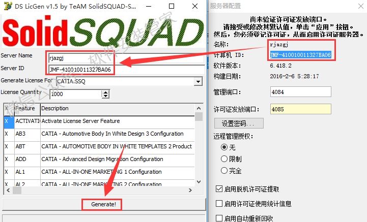 32.将右图中的两个信息分别填入左图中,其中“名称”只能手动输入,“计算机 ID”可选中后“Ctrl+C复制”“Ctrl+V粘贴”填写完成后点击“Generate”。