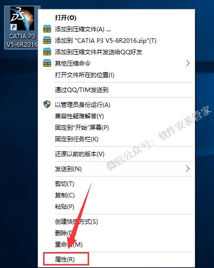 43.找到桌面上的“CATIA P3 V5-6R2016”选中后鼠标右击选择“属性”。