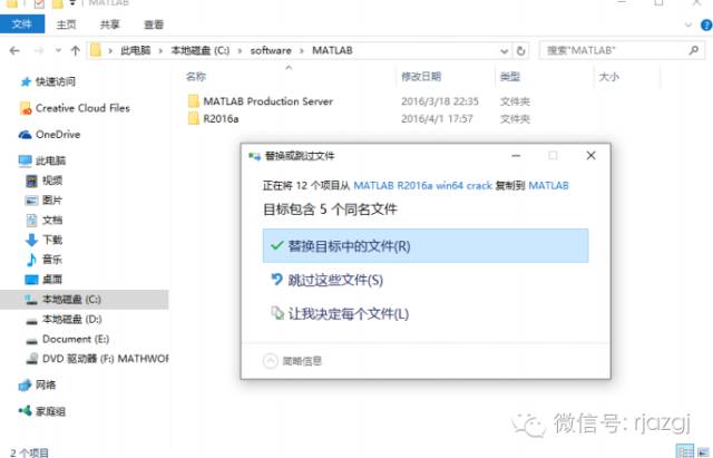 12. 解压 MATLAB R2016a win64 crack,复制 R2016a 文件夹