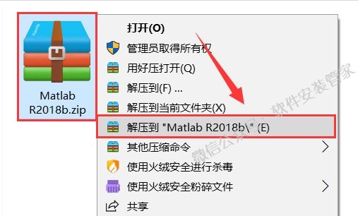 1.选中【Matlab R2018b】压缩包,鼠标右击选择【解压到Matlab R2018b】。