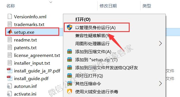 4.选中【setup】可执行文件,鼠标右击选择【以管理员身份运行】。