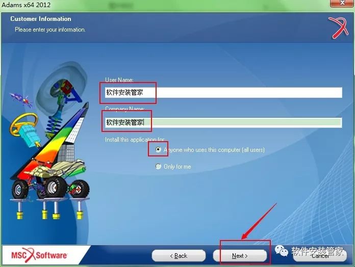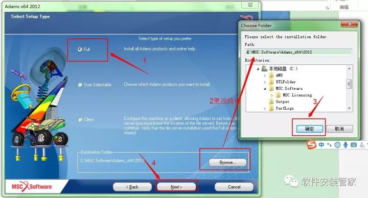 20、选择安装模式和安装目录,点击“FUll”,然后点击“Browse”更改安装路径,建议安装到除C盘的以外的其他磁盘,可在D盘新建一个Adams2012文件夹,然后点击Next。