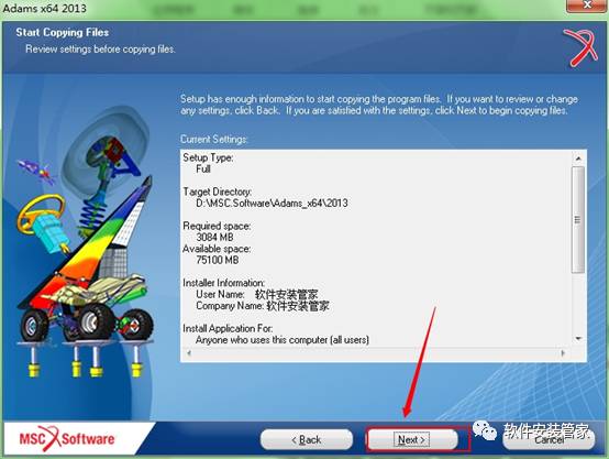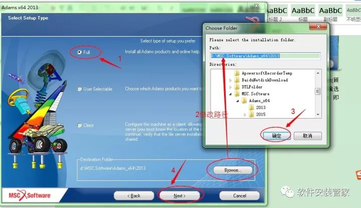 20、选择安装模式和安装目录,点击“FUll”,然后点击“Browse”更改安装路径,建议安装到除C盘的以外的其他磁盘,可在D盘新建一个Adams2013文件夹,然后点击Next。