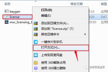 12、选择license按住鼠标左键,将license.dat拖到keygen.exe上。