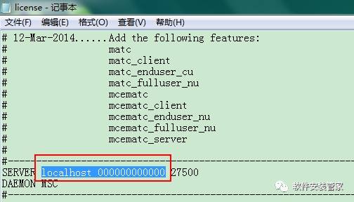 9、返回用记事本打开的“license”的文本,并在文本中找到“localhost 000000000000”。