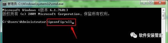 7、输入“ipconfig/all”(要一个一个字母的输入不准有错),然后按回车键。