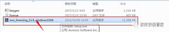 13、然后双击打开msc_licensing_11.9_windows3264.exe。