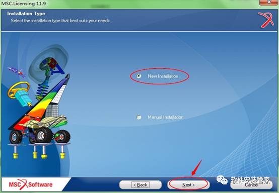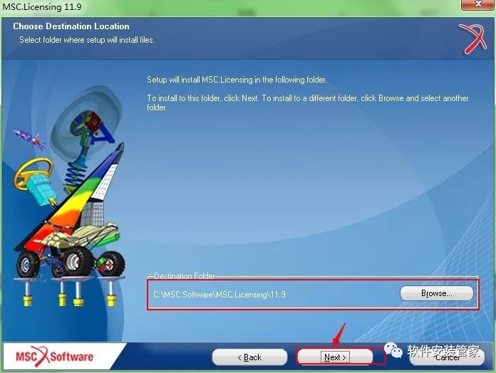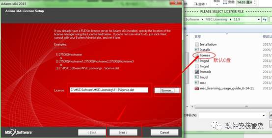 29、安装完成后会弹出以下界面,点击“Browse”选择前面(第17步)生成的新许可文件license.dat,路径C:\MSC.Software\MSC.Licensing\11.9\license.dat,然后点击Next。
