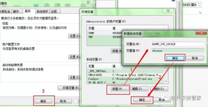 38、在系统变量中新建变量名ADAMS_GUI_LOCALE变量值Chinese,然后点击确定。