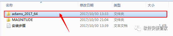 16、返回到安装包中双击打开“adams_2017_64”文件夹
