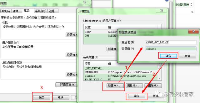 33、在系统变量中新建变量名ADAMS_GUI_LOCALE变量值Chinese然后点击确定。