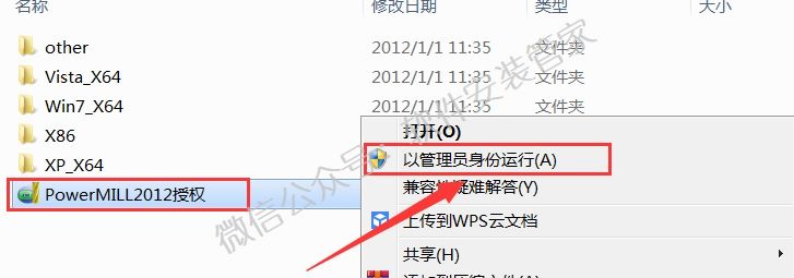 3.选中【PowerMILL2012】,鼠标右击选择【以管理员身份运行】。