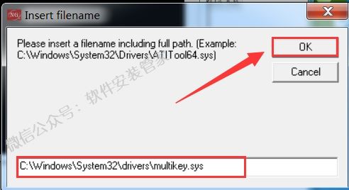 27.输入“C:\Windows\System32\drivers\multikey.sys”然后点击【OK】。