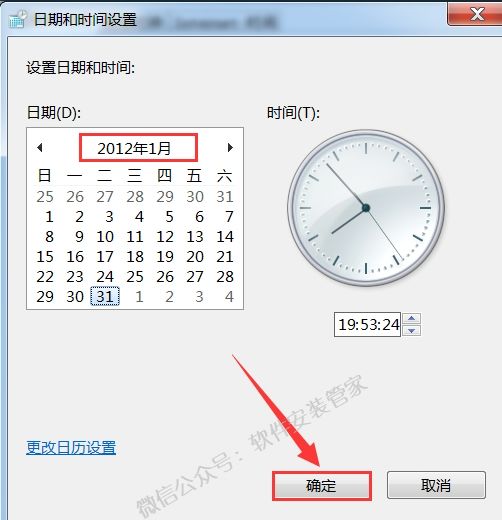 38.把电脑的时间改到2012年7月以前的日期,点击【确定】然后重新启动电脑。
