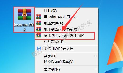 1.选中【Inventor2012】压缩包,鼠标右击选择【解压到Inventor2012】。