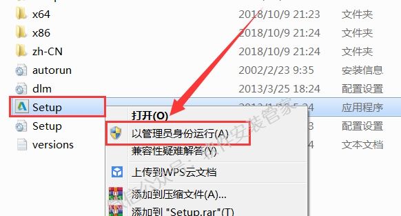 4.选中【Setup】可执行文件,鼠标右击选择【以管理员身份运行】。