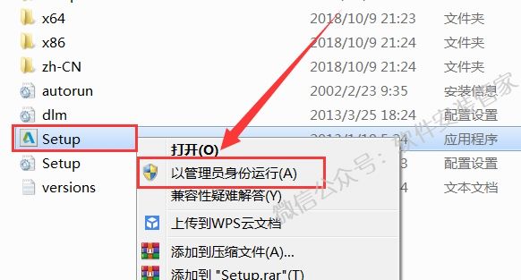 4.选中【Setup】可执行文件,鼠标右击选择【以管理员身份运行】。