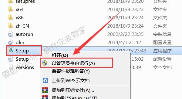 4.选中【Setup】可执行文件,鼠标右击选择【以管理员身份运行】。