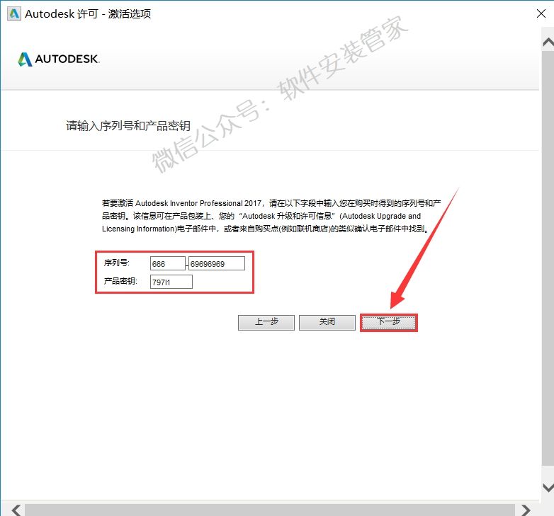 18.再次输入序列号:666-69696969,产品密钥:797I1,然后点击【下一步】。注意797I1中的I是i的大写